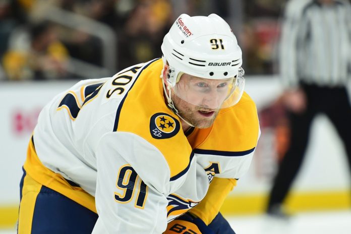 Steven Stamkos completed a hat trick in overtime to lift the Nashville Predators to a 3-2 win against the visiting Chicago Blackhawks on Saturday.