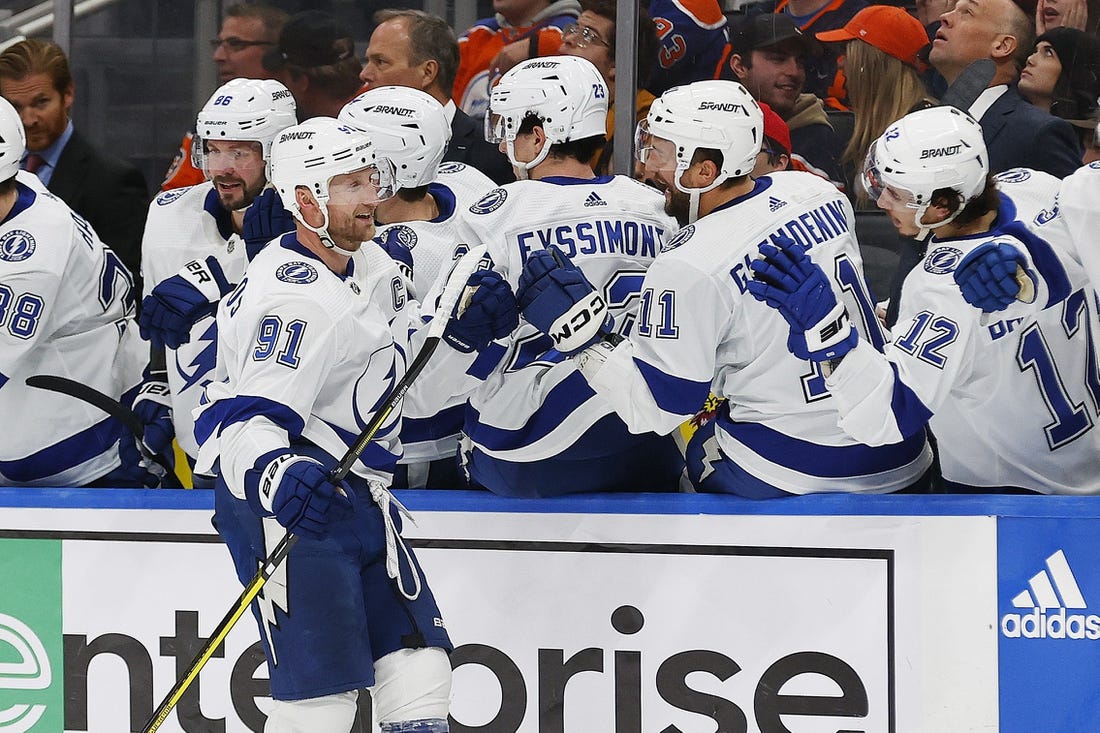 It was the first four-goal game of Stamkos’ career and included his 200th career power-play goal. Nikita Kucherov had a goal and two assists, Conor Sheary added two assists and Tyler Motte and Anthony Cirelli also scored for Tampa Bay.