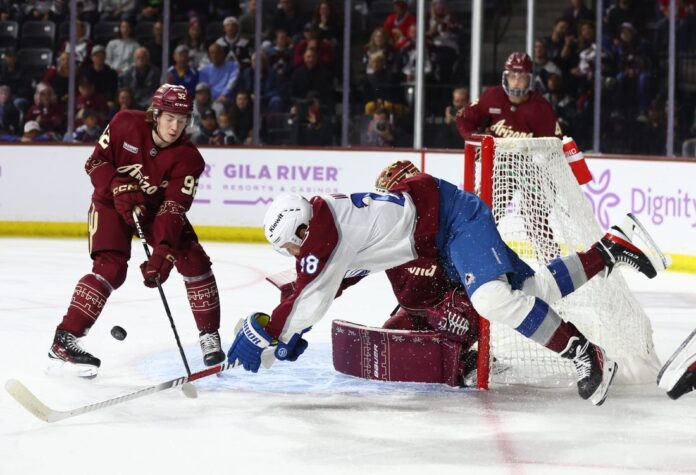 Carcone gave the Coyotes their first lead of the game, 3-2, at 1:08 of the third period. He beat the Colorado defense to a puck in the left corner to stave off an icing call, skated behind Georgiev and scored on a wraparound shot for his 10th goal of the season.
