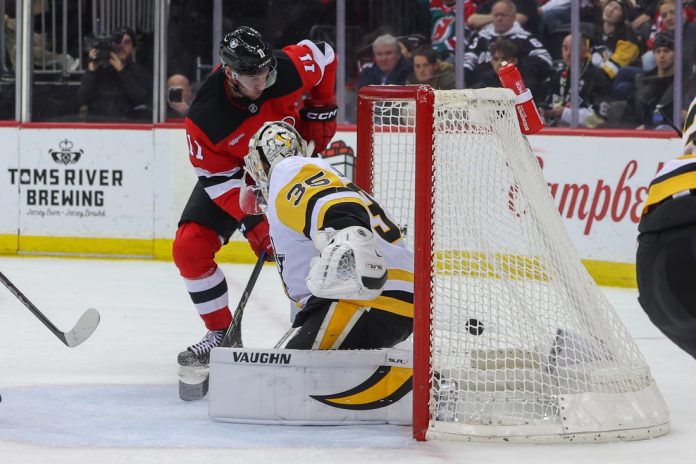 The Devils doubled the advantage at 7:47 of the third period. Defenseman Dougie Hamilton’s shot was denied by Jarry, however Hischier alertly spotted the loose puck during a scrum for his team-leading 17th goal of the season.