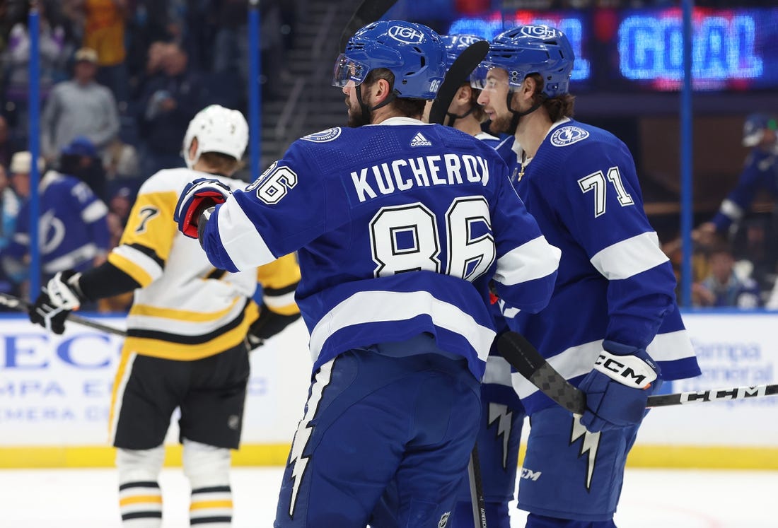 NHL points leader Nikita Kucherov recorded a goal and an assist, established a Tampa Bay franchise record, and the Lightning topped the visiting Pittsburgh Penguins 3-1 on Wednesday night.