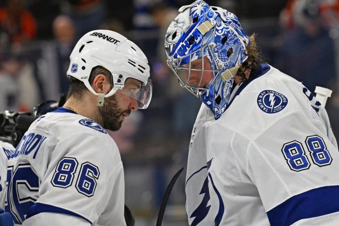 “It doesn’t necessarily surprise me, but I’m just so impressed by it,” Lightning forward Brayden Point, who had three assists, said of Kucherov. “It’s every year. I think a lot of it is not only his talent, but his dedication and his work ethic. He’s our best player, and he works the hardest. There’s a reason why, not only was he gifted, but he’s worked really hard to become one of the best players in the league.”