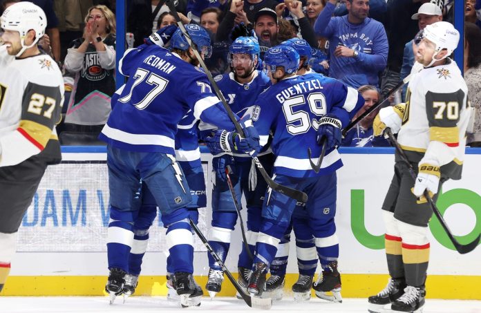 Kucherov took a shot from just above the goal line that hit the skate of Vegas defenseman Nicolas Hague and went into the net.