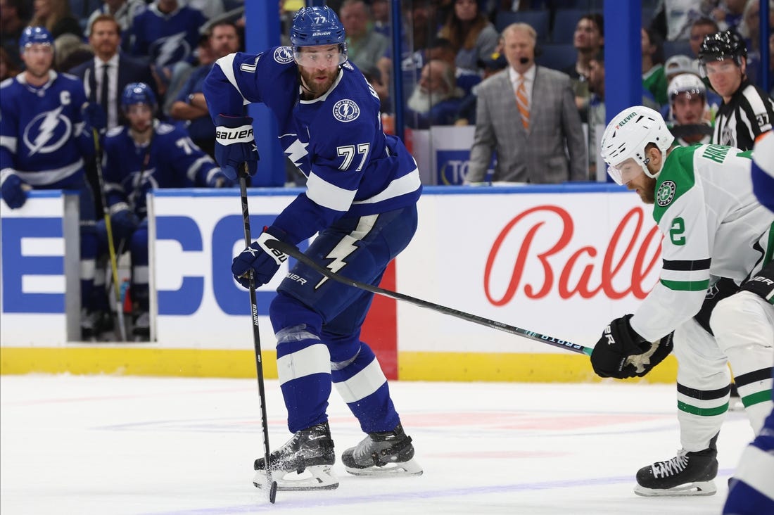 After the Stars thrashed the Lightning 8-1 on Saturday in Dallas in the first clash between the teams, Kucherov made the Stars pay early in the rematch when he slipped in behind their defense during zone time.