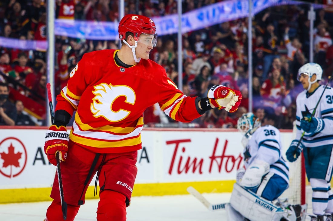 Matt Coronato, Calgary’s 2021 first-round draft choice, also had a strong NHL debut, firing four shots on net, including a couple of dandy chances that Kahkonen denied.