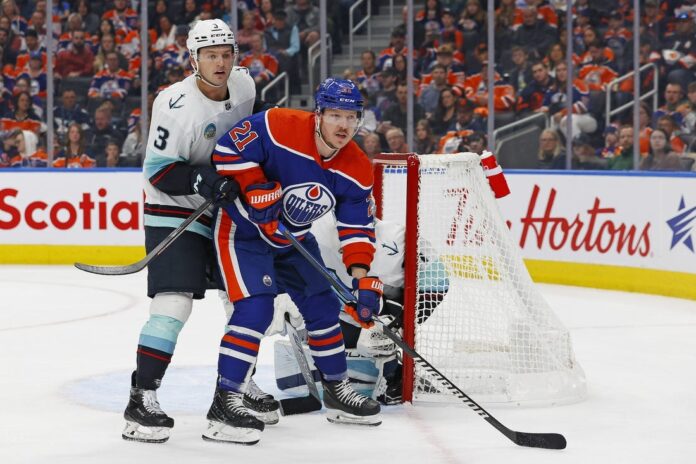 The incident occurred during Edmonton’s 4-3 overtime win against the visiting Kraken on Wednesday night.