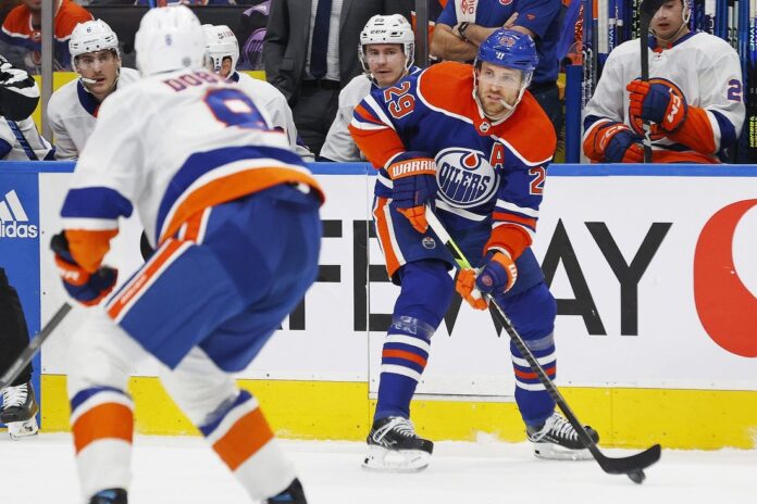 In the second period of the Oilers’ 4-1 win over the visiting Islanders on Monday night, Draisaitl received a two-minute minor penalty for tripping Horvat. On the play, Draisaitl crosschecked the back of Horvat’s legs as players battled along the boards.