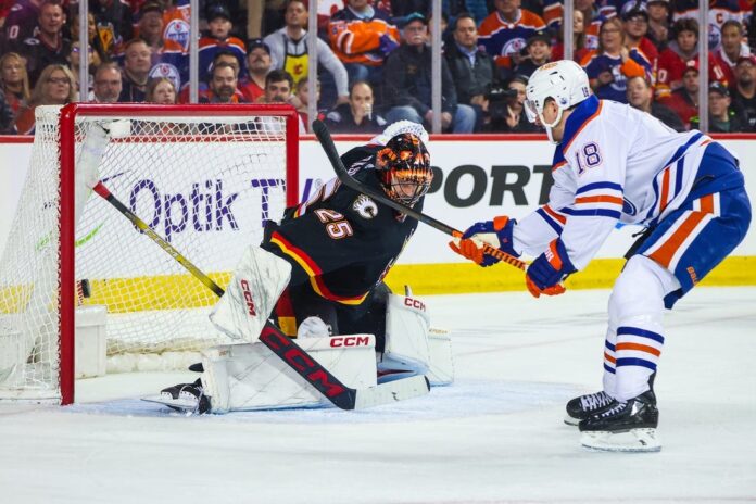 To their credit, the Flames pulled even with a pair of power-play goals. Sharangovich put the hosts on the board 44 seconds later by blasting a one-timer from the left faceoff dot to notch his first 30-goal campaign.