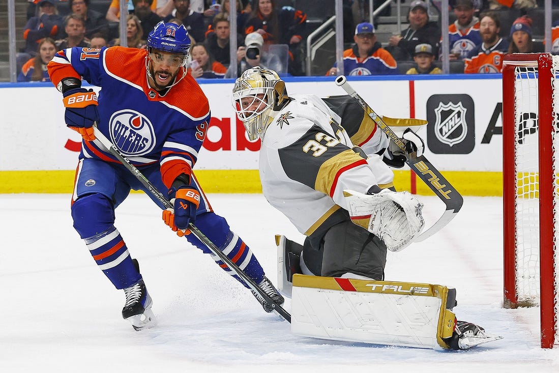 Hyman, alone in front of the crease, scored at 8:06. He swept in a rebound of a Nugent-Hopkins shot into a wide-open right side of the net for his 53rd goal, moving him into a tie for second in the league with the Florida Panthers’ Sam Reinhart.
