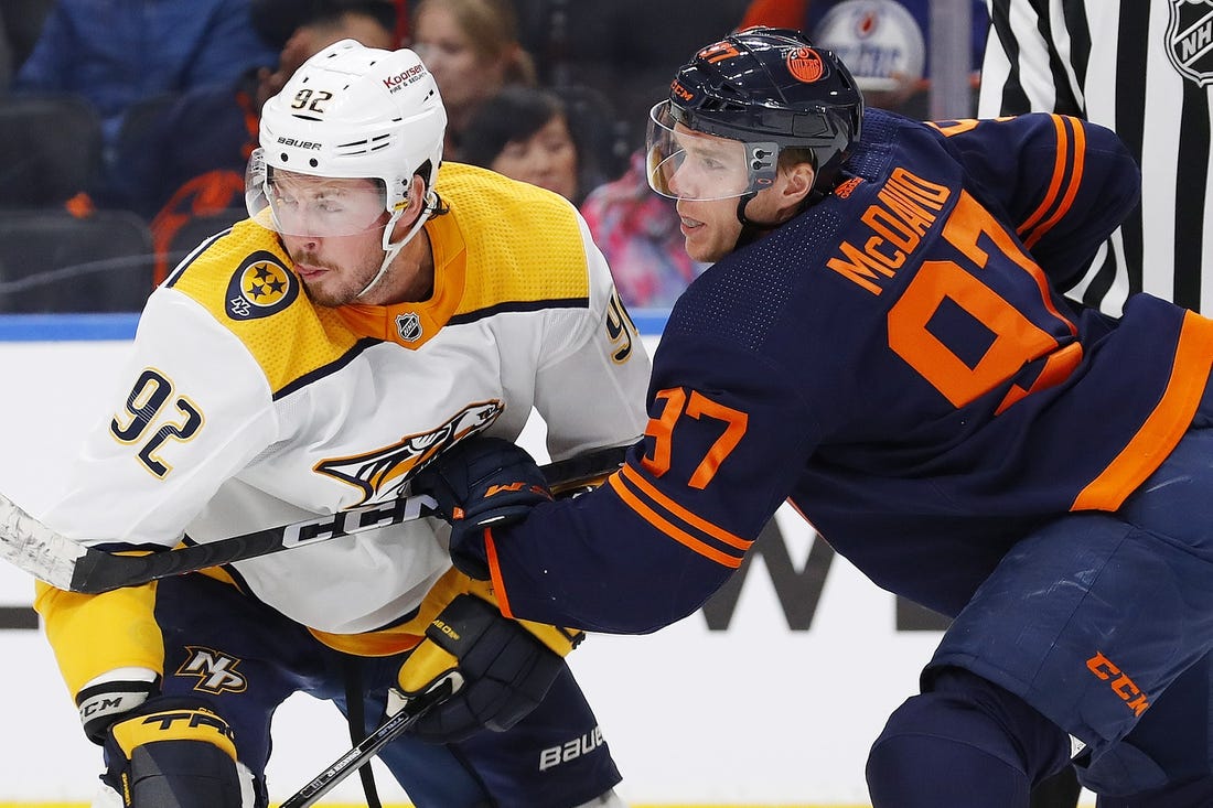 Teammate Filip Forsberg has a team-high 23 points, but none in the last two games. He posted a goal with two assists in that November loss at Edmonton but failed to register a point in his last three home games against the Oilers.