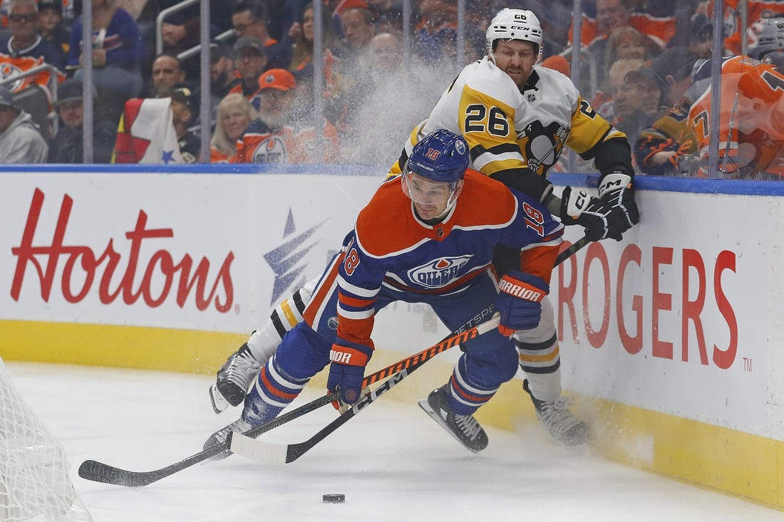 After Hyman scored off an assist from Evan Bouchard to give the Oilers a 1-0 lead at the 4:36 mark of the opening period, the Penguins bunched two goals midway through the period to take a 2-1 lead into the first intermission.
