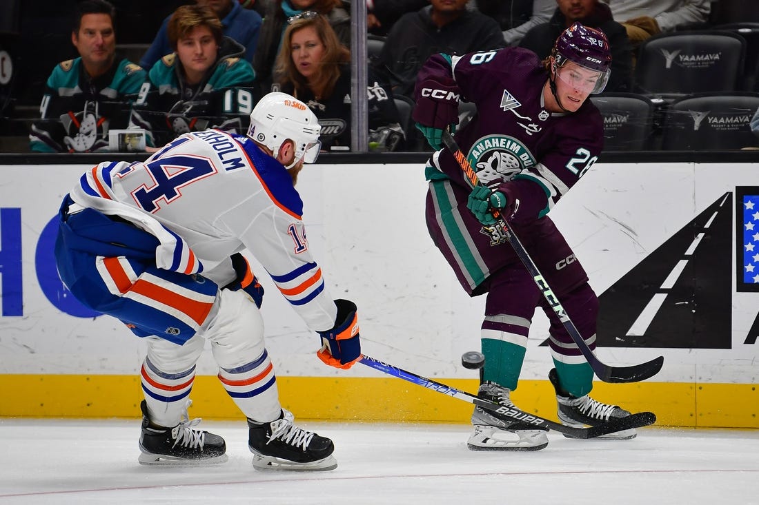 Anaheim tied it, 1-1, at 9:10 of the period when Jones put in a rebound of a Ryan Strome shot. But the Oilers regained the lead at the 17:22 mark when Kane wrapped a shot around the right post and through Gibson’s pads for his 14th goal of the season.