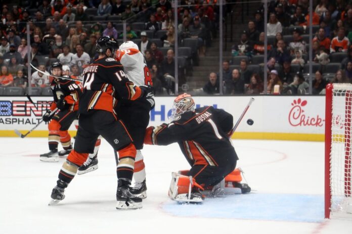 Owen Tippett scored twice while Travis Sanheim contributed a goal and two assists to lead the visiting Philadelphia Flyers to a 6-3 victory over the Anaheim Ducks on Friday.