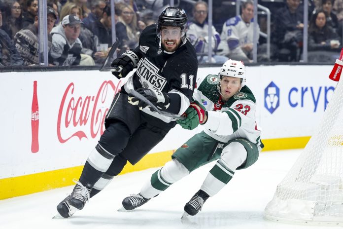 The Kings took a 1-0 lead 43 seconds before the end of the first period when Kempe charged the Wild goal and had a Fleury save, off a Kopitar shot, bounce off his skate and go into the back of the net. It was Kempe’s team-leading 13th goal of the season.