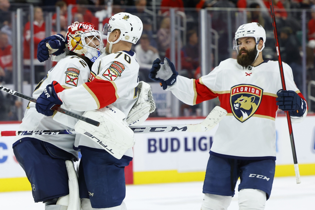 Barkov and Eetu Luostarinen each scored first-period goals against Detroit before Florida goalie Sergei Bobrovsky gave up a goal in the second and another in the third to force overtime.