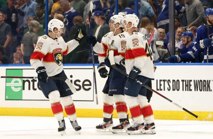 Florida used the momentum of the two successful kills to take a 1-0 lead when its second line — which produced Carter Verhaeghe’s Game 2-winning overtime goal — cashed in. A wide-open Tkachuk tallied from in close after a feed from Anton Lundell at 10:39.