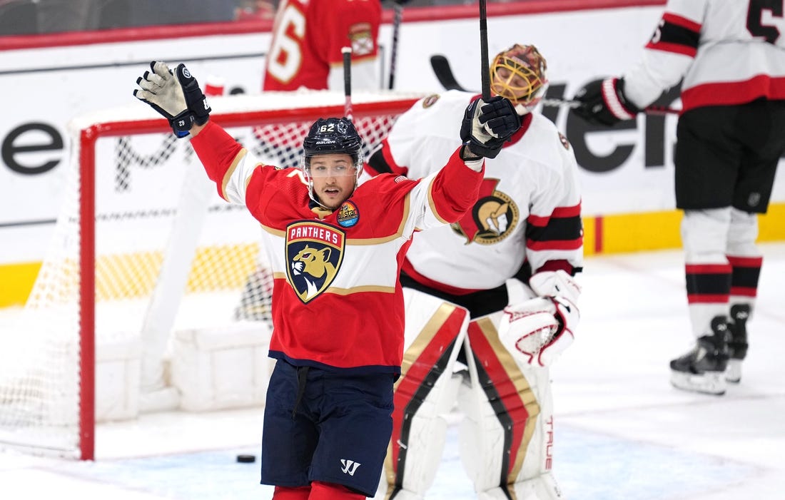 Barkov, who led the Panthers with a career-high 39 goals last season, scored his first of the season with a wrist shot from top of the right circle with 11 seconds left on a power play, stretching the lead to 2-0 at 11:54.
