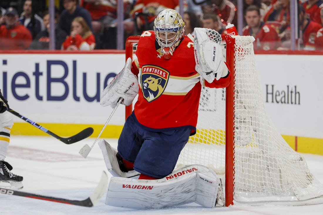 Bruins goalie Linus Ullmark kept the Panthers off the board until Gustav Forsling and Sam Reinhart scored in the final five minutes.