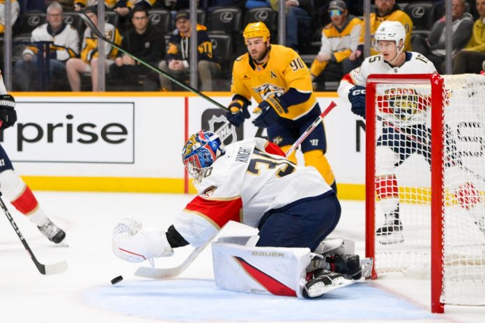 Florida wasted no time opening the scoring. On the power play, a severe defensive breakdown by the Predators left Sam Reinhart and Bennett alone in front of the Predators’ Juuse Saros (21 saves); Reinhart dropped the puck for Bennett to easily bury 1:23 into the contest.