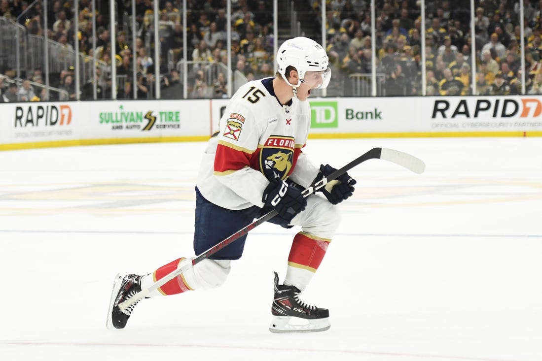 Gustav Forsling’s rebound goal with 1:33 left in regulation lifted the Panthers to a 2-1, series-clinching win in Game 6 of the Eastern Conference semifinals on Friday in Boston.