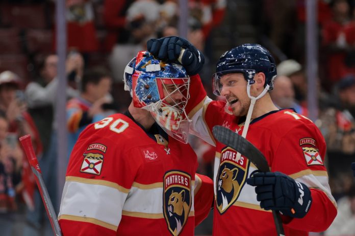Aaron Ekblad, Mackie Samoskevich, Sam Bennett, Aleksander Barkov, Adam Boqvist and Evan Rodrigues each scored for the Panthers.