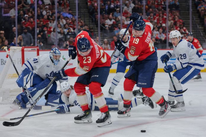 Carter Verhaeghe’s three-point night helped the Florida Panthers snap their four-game losing streak with a 5-1 win, cooling off the visiting Toronto Maple Leafs on Wednesday night in Sunrise.
