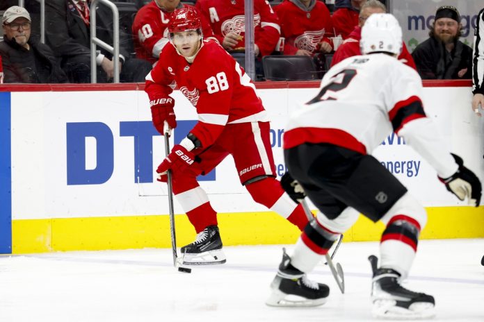 Dylan Larkin won a faceoff in Detroit’s offensive zone and passed it behind him to Kane, who easily snapped the game-winner past Anton Forsberg. It came on a power play, as Jake Sanderson was penalized 11 seconds earlier for hooking Moritz Seider.