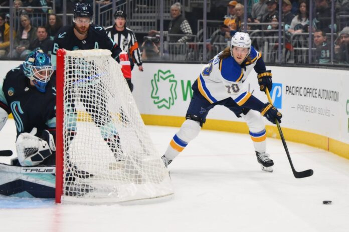 Pavel Buchnevich scored twice, including the winner at 3:31 of overtime, and added an assist as the St. Louis Blues rallied for a 4-3 victory against the host Seattle Kraken on Friday night.