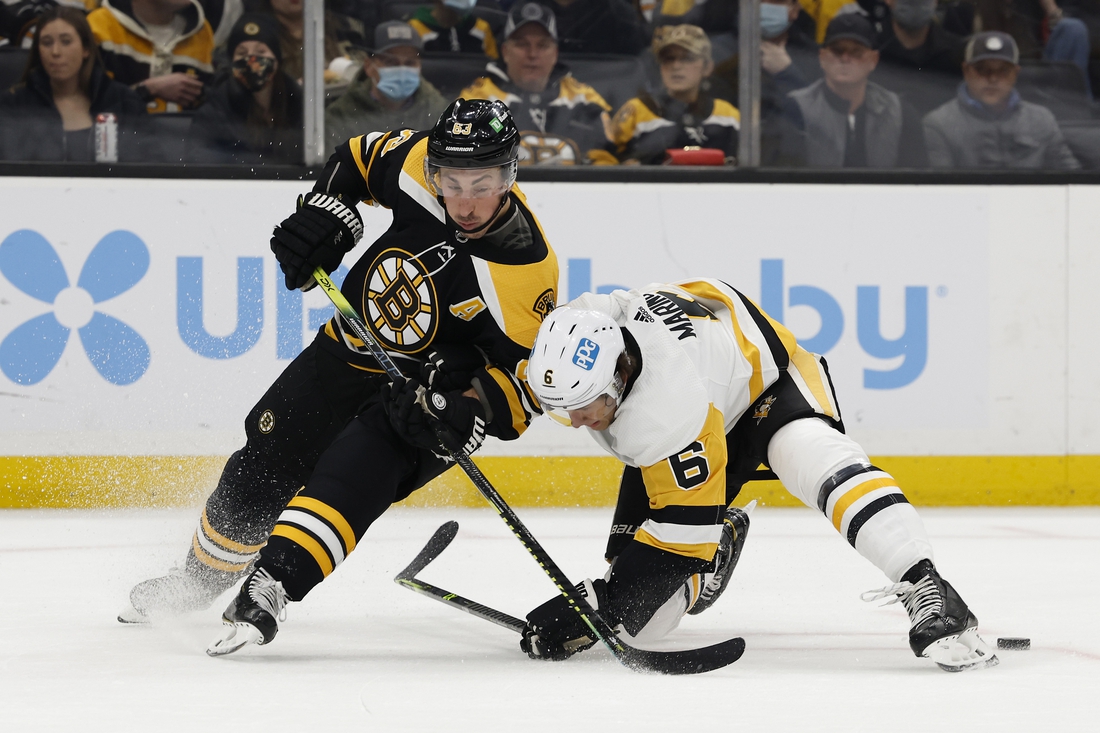 Metropolitan Division All-Star goalie Tristan Jarry made 43 saves for the Penguins, including a flashing glove stop on Tomas Nosek’s shot through traffic that would have tied the score with 4:29 left. In the final minutes, Bruins star Brad Marchand was penalized for seven minutes for punching Jarry.