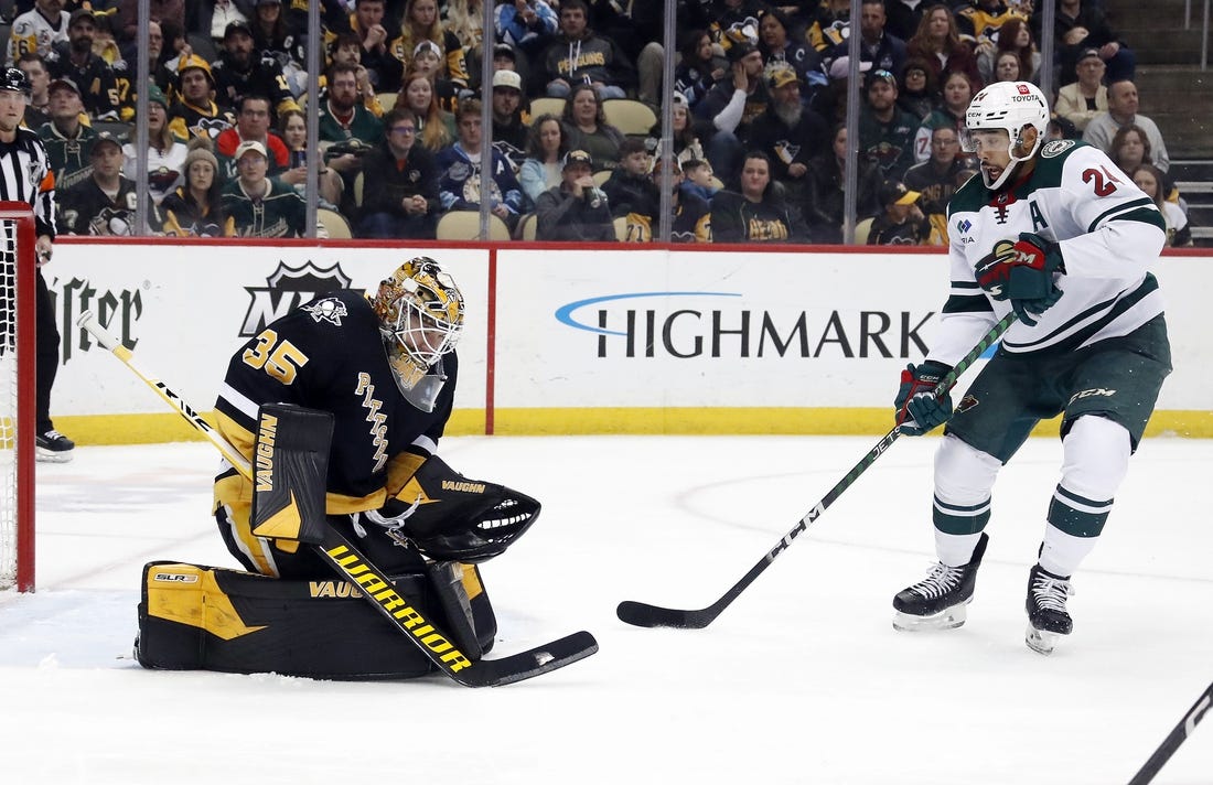 Minnesota goaltender Marc-Andre Fleury, a longtime Penguins core player, stopped 27 shots.
