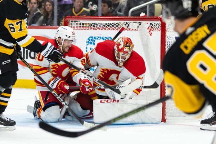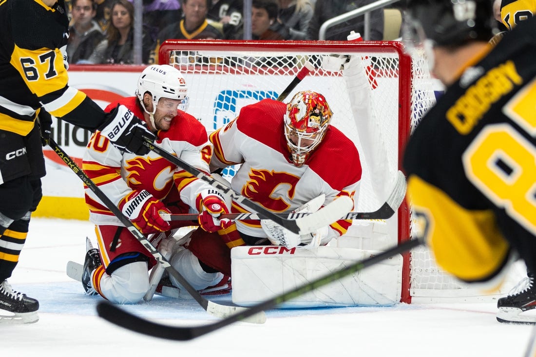 After a faceoff, Guentzel increased it to 3-1 at 5:50. Sidney Crosby won the draw to Markstrom’s right. Letang, from along the boards, got the puck across to Guentzel, who had raced to the far circle. He swept the puck in short side.