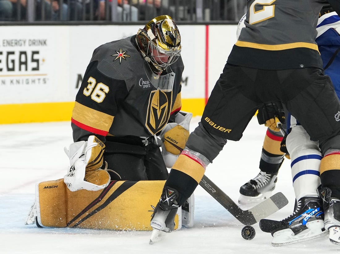 The Golden Knights made it 3-1 at 8:11 of the third as Nicolas Hague picked off a pass at center ice as Toronto was making a line change. Hague carried the puck to the top of the left faceoff circle before sending a pass to Amadio in the slot for a wrist shot that beat Samsonov low to the stick side.