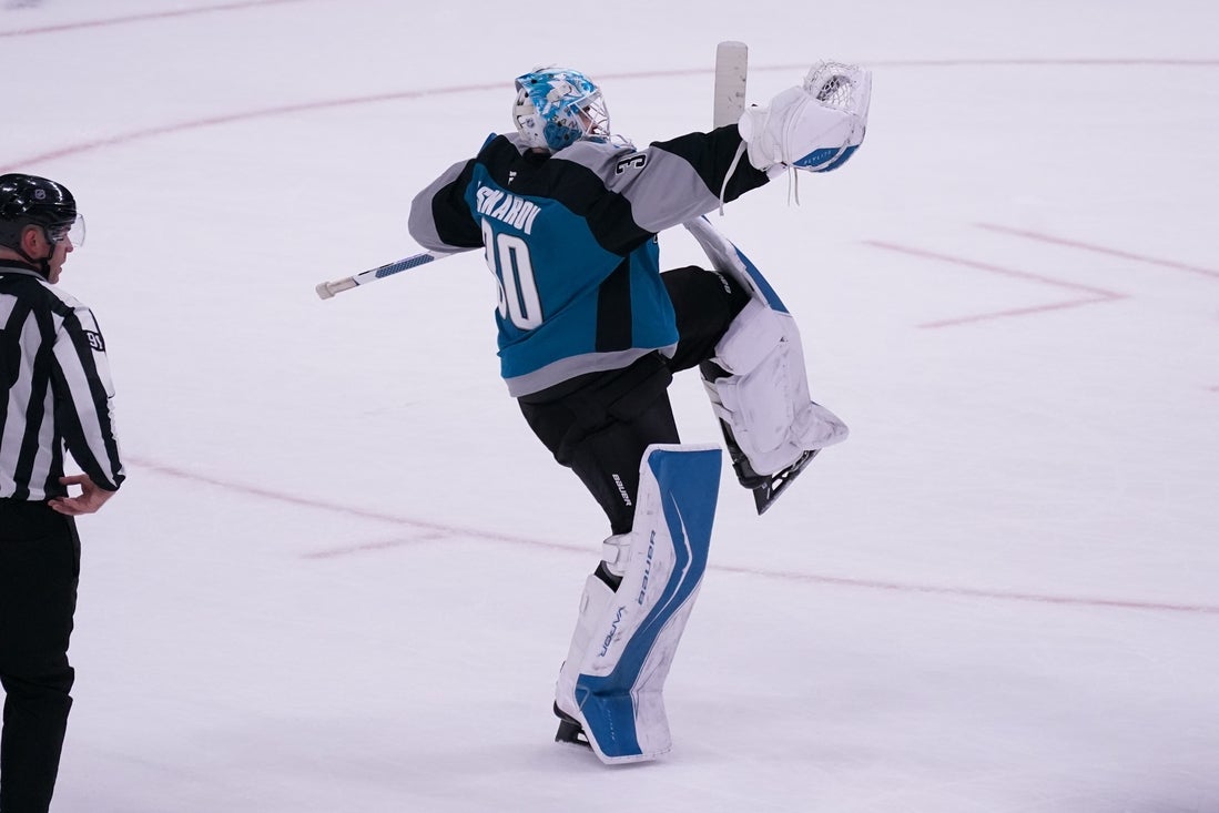 Yaroslav Askarov made 31 saves and stopped all three shots in the shootout while Ty Dellandrea and Adam Gaudette also scored goals for the Sharks. Collin Graf had two assists.