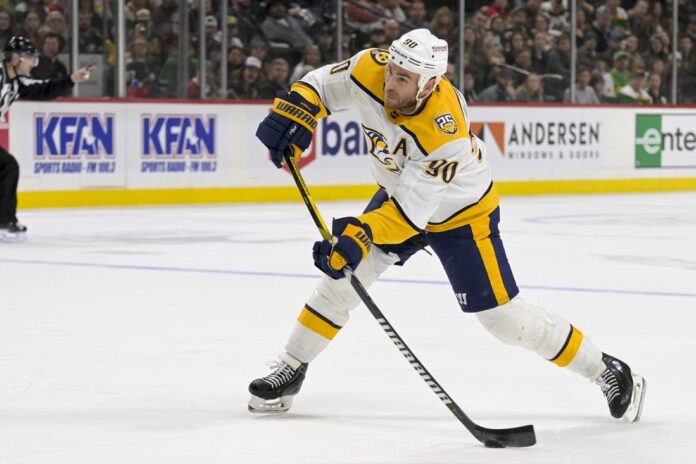 Ryan O’Reilly kept the point streak alive for Nashville when he forced overtime with a tally with only 2:02 left in the third period.