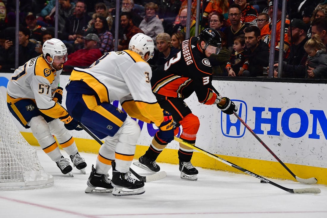 Sissons opened the scoring at 8:06 of the first period. Forsberg intercepted Anaheim defenseman Urho Vaakanainen’s rim around the boards at the left wall and quickly fed Sissons, who snapped it top shelf on the far side from the left circle to give the Predators a 1-0 lead.