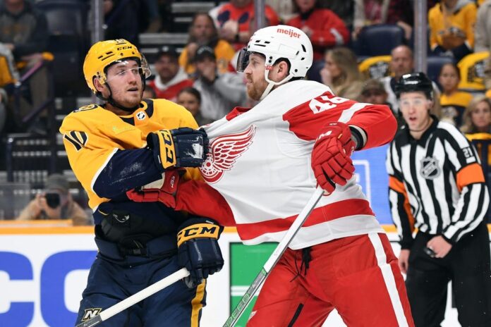 The Red Wings put heavy pressure on Saros and the Predators’ defense after Lyon was pulled for an extra skater with two minutes remaining but came up empty.