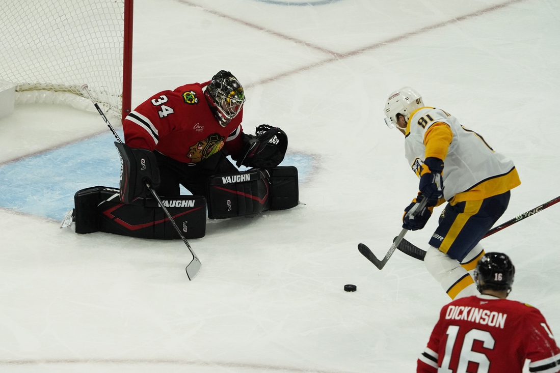 Smith gave the Blackhawks a 1-0 lead at 2:55 of the first period. Lukas Reichel entered the zone two-on-one with Smith and held the puck until he was deep in the attacking end before sliding it across the slot for the tip-in by Smith.