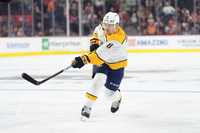 He played in 24 games for Nashville, recording two assists, 36 penalty minutes, 58 hits and 33 blocked shots.