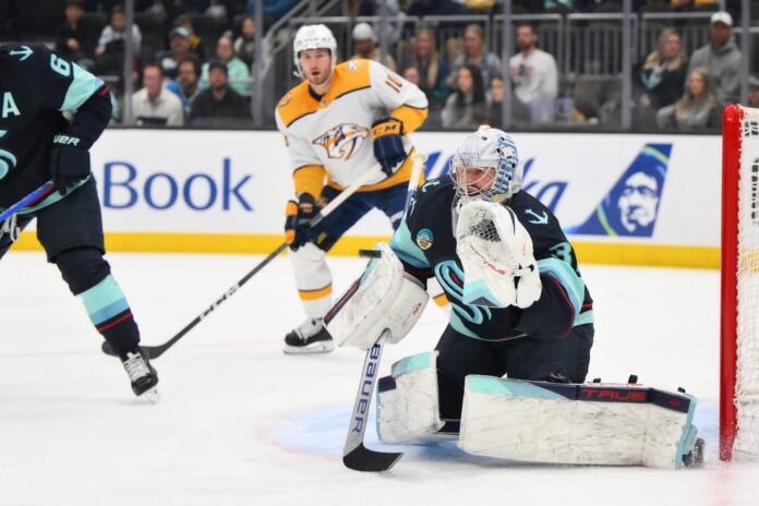After the Kraken tied the score at 1-1 early in the third, Josi restored Nashville’s lead on the power play at 3:59. Grubauer made a strong save on Forsberg’s close-range shot but Josi collected the rebound low in the right faceoff circle and lifted a shot into the upper right corner.