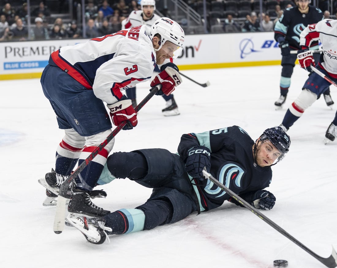 The Capitals opened the scoring at 7:36 of the first period. Ovechkin lined up for a shot from the high slot before being checked by Seattle’s Jared McCann. The puck trickled off Ovechkin’s stick to Fehervary, whose low slap shot from the top of the left faceoff circle beat Grubauer just inside the far post.