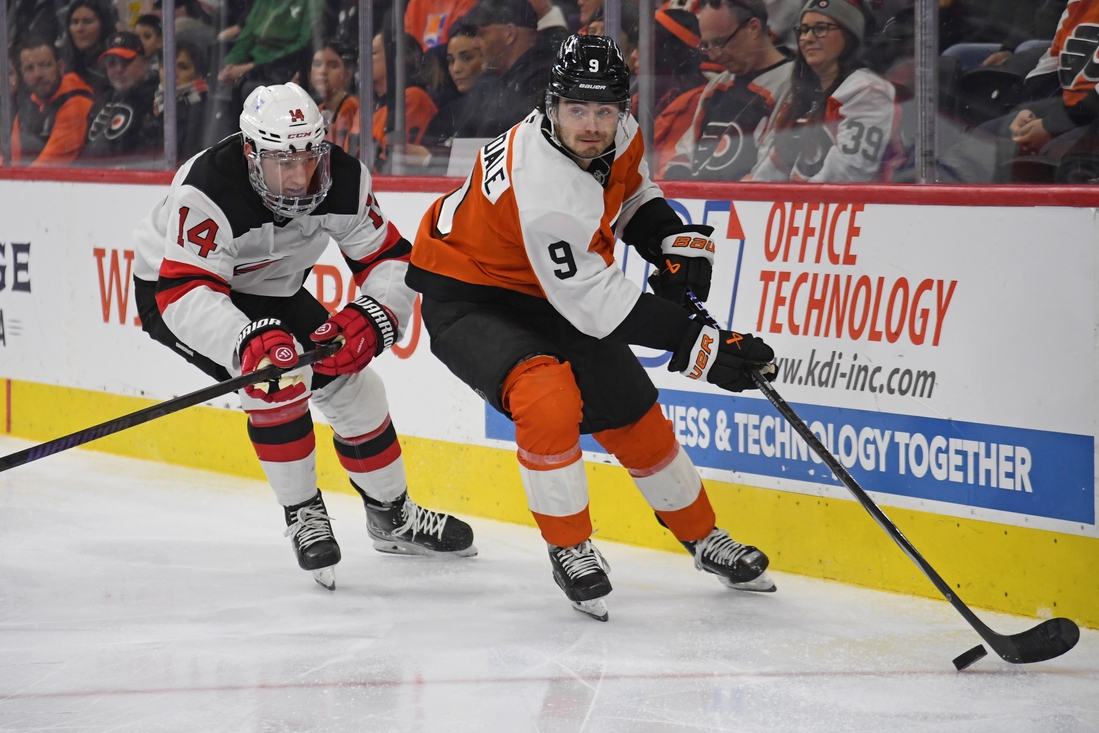 New Jersey then turned the puck over in the neutral zone and Farabee scored off a rebound in front of the crease for a 2-0 lead at 11:32.