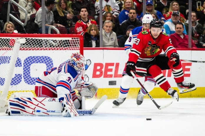 Chicago opened the scoring just 2:39 into the game. Alex Vlasic gathered a deflection and wristed a shot past Shesterkin from the top of the left circle.