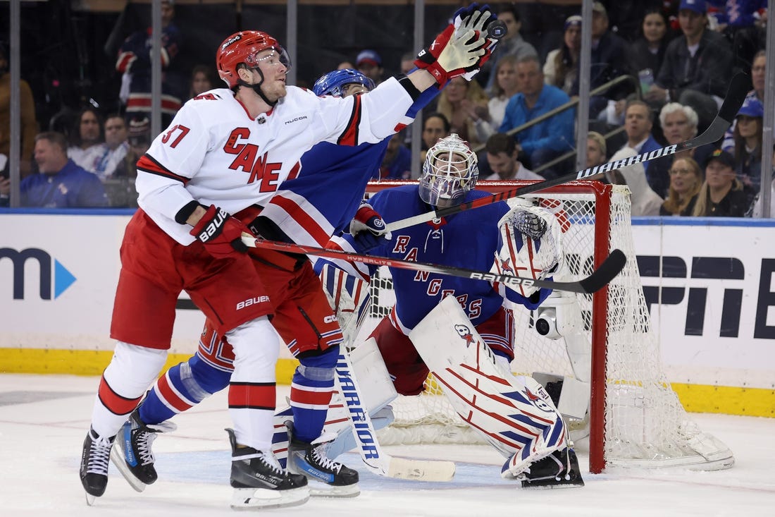 Carolina’s Jake Guentzel scored twice for his eighth career multi-goal playoff game, three of which have come against the Rangers. Dmitry Orlov also tallied for the Hurricanes, while Sebastian Aho matched a playoff career high with three assists.