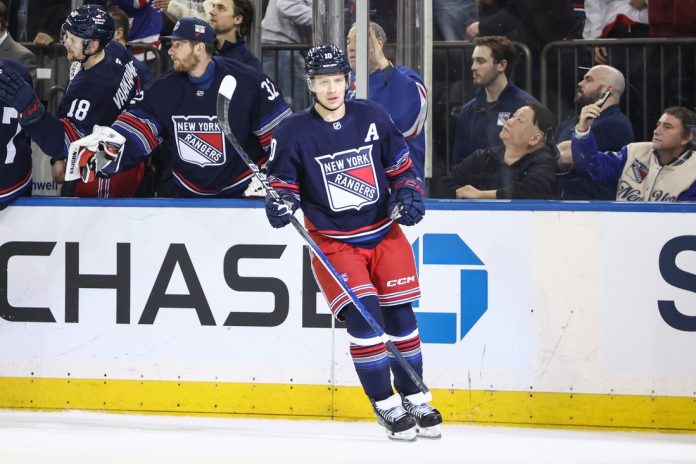 Artemi Panarin extended his point streak to seven games (five goals, five assists) with his 41st assist of the season as New York improved to 7-3-3 in its last 13 road games.