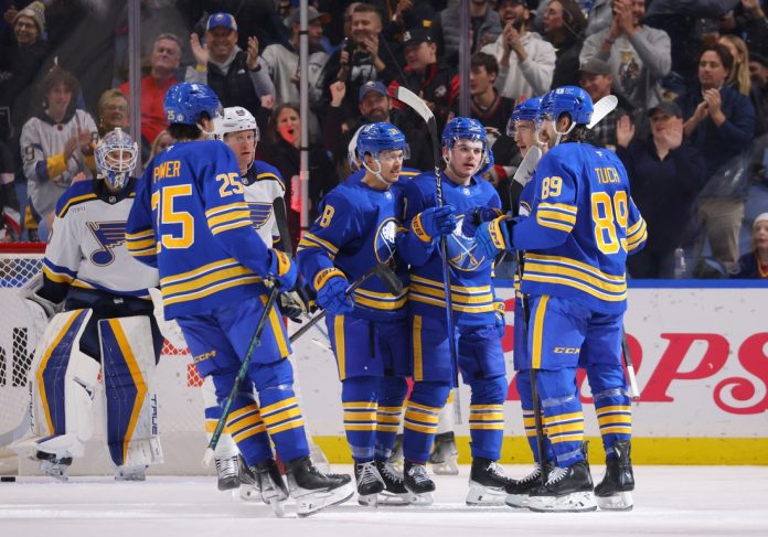 The Sabres thought they tied the score early in the third period when Dylan Cozens jammed in a loose puck. However, the Blues successfully challenged the score for goaltender interference on Benson.