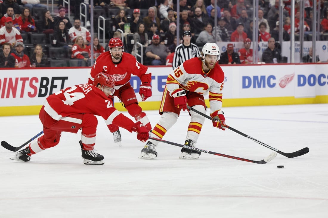 The Red Wings head to Calgary following a 5-4 shootout win over the host Edmonton Oilers on Wednesday. Detroit surrendered a 4-2, third-period lead but pulled off a victory thanks to Pius Suter’s goal in the fifth round of the shootout.