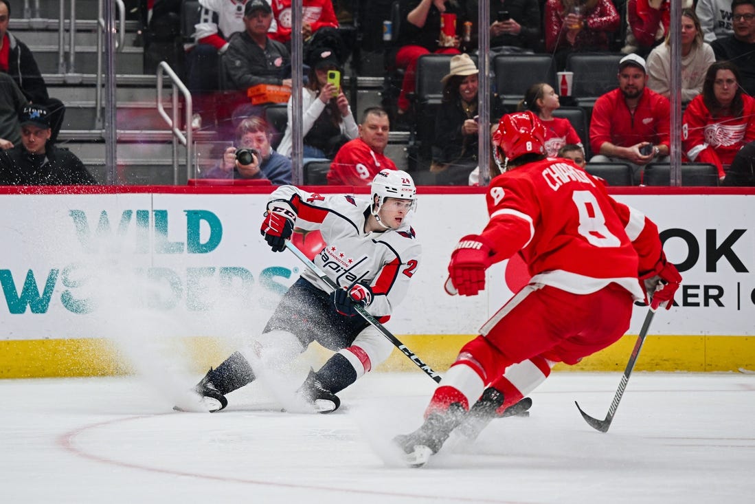 Detroit restored a two-goal lead less than three minutes later. Perron made a steal in the Capitals’ zone and sent the puck to Veleno. He skated into the slot and went top shelf for his 11th goal.