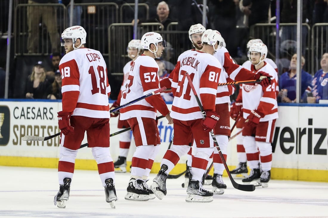 Playing the tail end of a back-to-back on Sunday, Detroit trailed the New York Rangers 2-0 after the first period. Matt Luff and Pius Suter scored second-period goals to tie it and Dominik Kubalik’s power-play goal in overtime gave the Wings a 3-2 win.