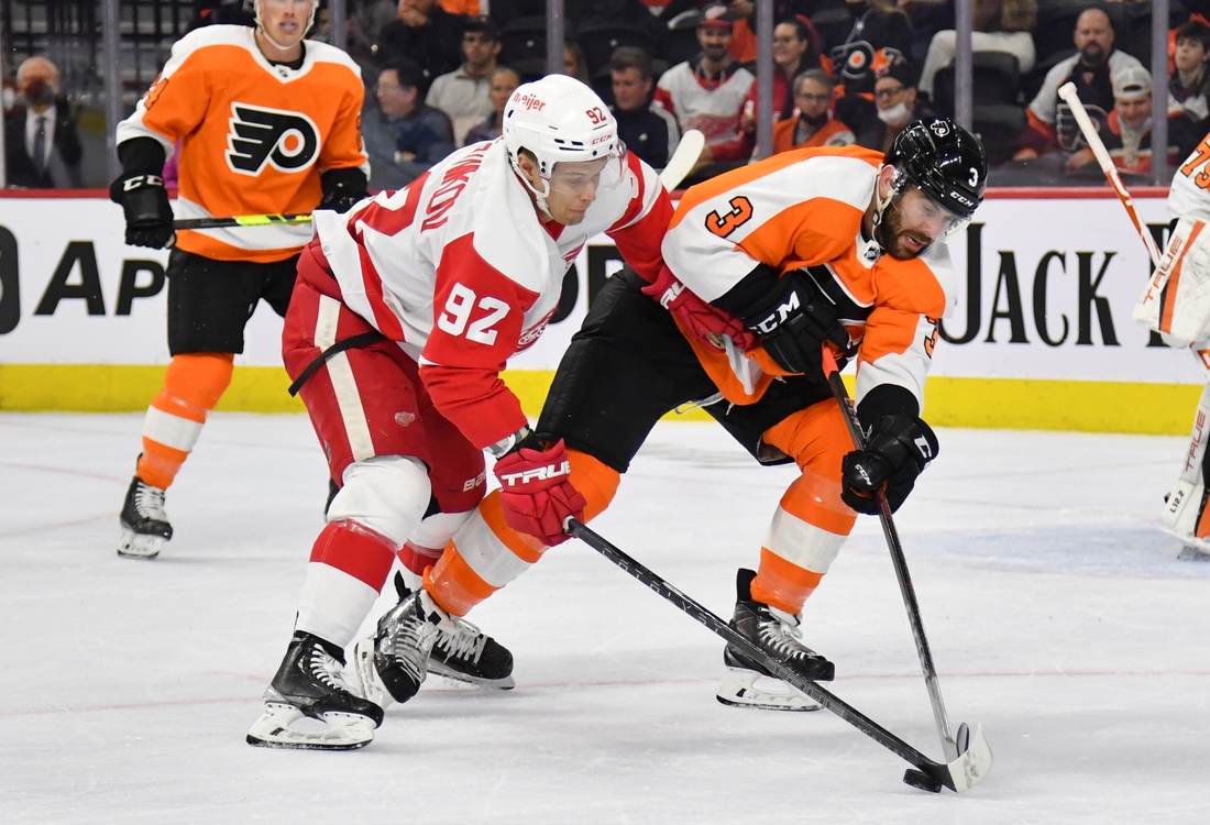 The Red Wings went ahead 1-0 on the power play when Larkin fired a shot off the skate of Philadelphia’s Ivan Provorov and into the net at 2:43 of the first period.