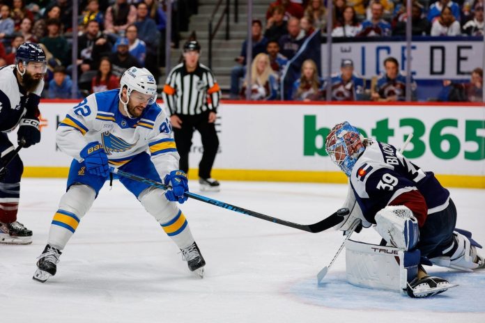 With the game tied, the Blues got an odd-man rush with Holloway carrying the puck down the right side and into the Colorado zone. Thomas went to the far side of the crease and tapped in Holloway’s pass with 2:50 remaining.
